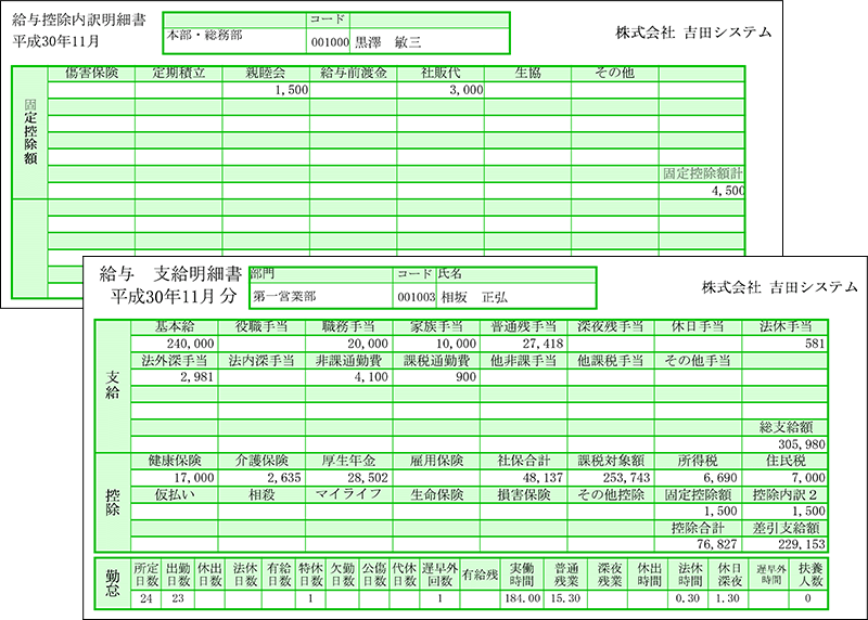 スマート給与は基本的に専用紙を利用せず、汎用紙へ枠線付きで印刷します。