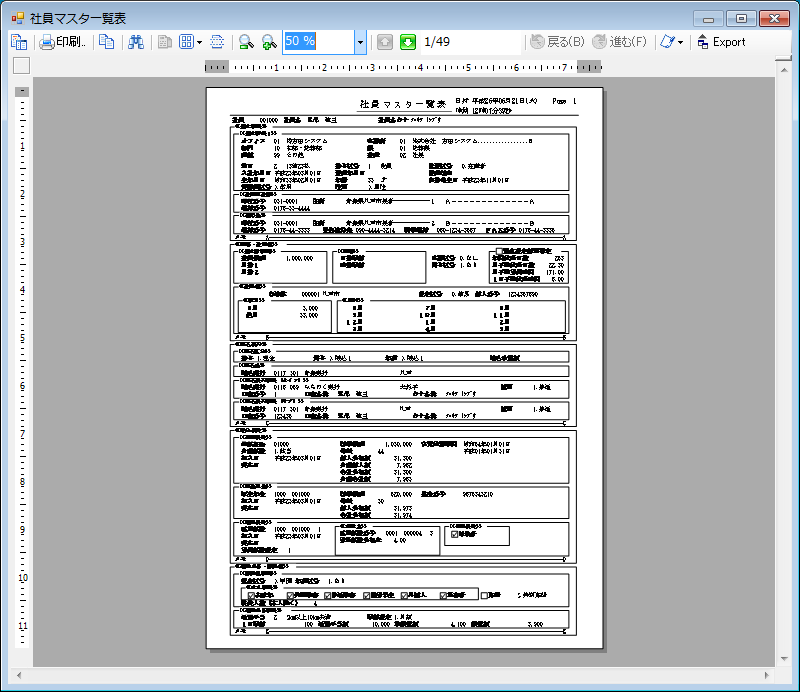 印刷処理としてはプレビュー(画面照会)の上、帳票出力やファイル出力が可能です。
