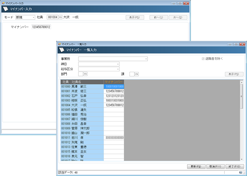 個人マイナンバーの入力