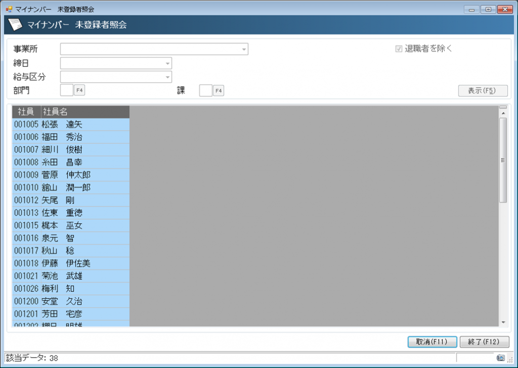 未登録者の一覧を画面および帳票にて確認できます。