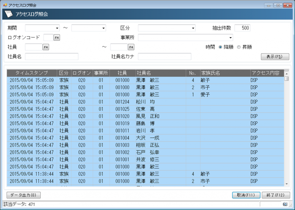 操作したことが記録として残るので、以前に誰が何を操作したか、誰の内容を照会したかが一目で分かります。