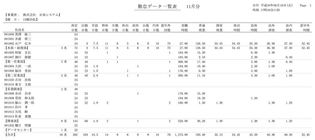 勤怠データ一覧表