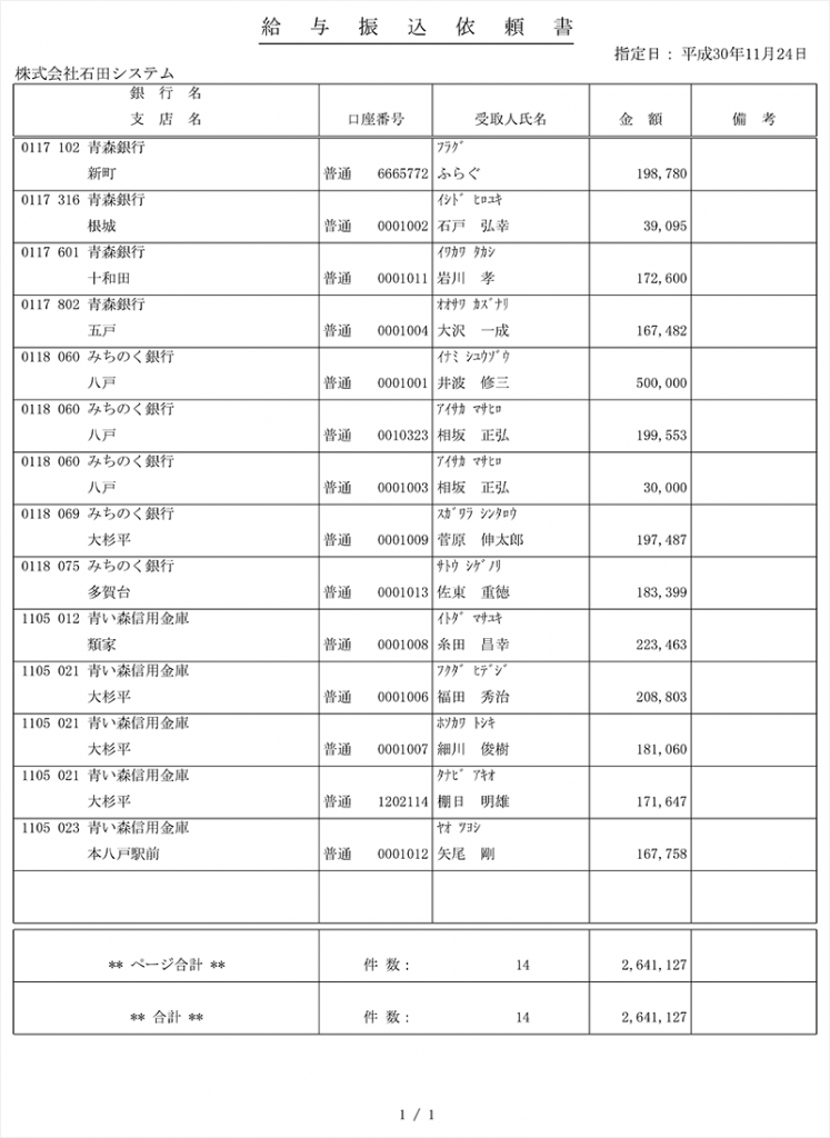 給与振込依頼書