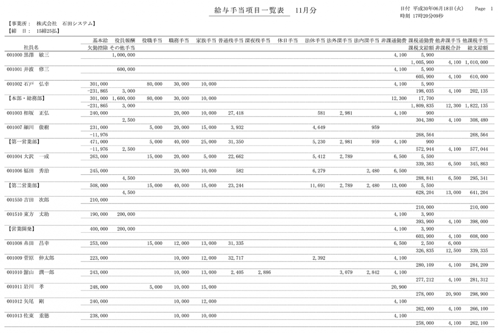 給与手当項目一覧表