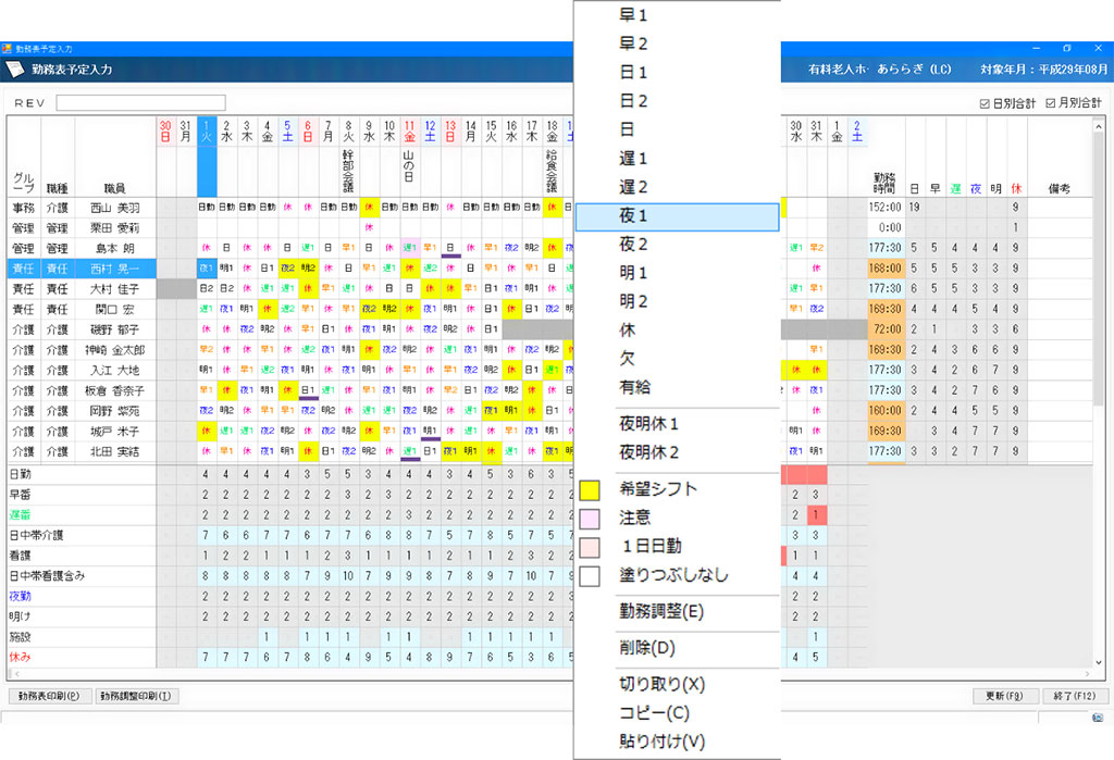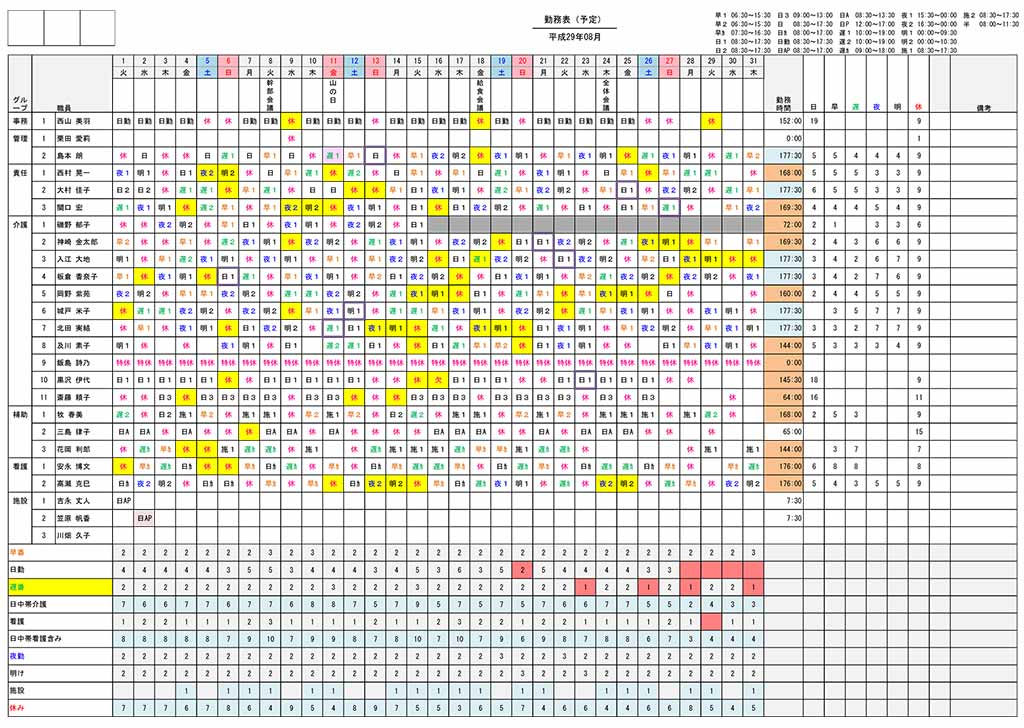 勤務表作成!